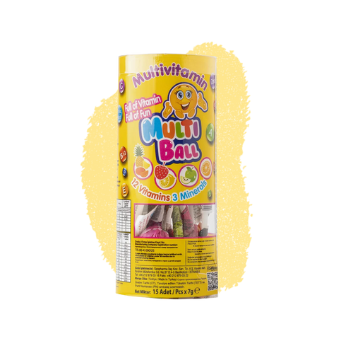 MultiBall packs a punch with 12 vitamins and 3 minerals. It boosts growth, immunity, bone health, energy, and focus for kids.